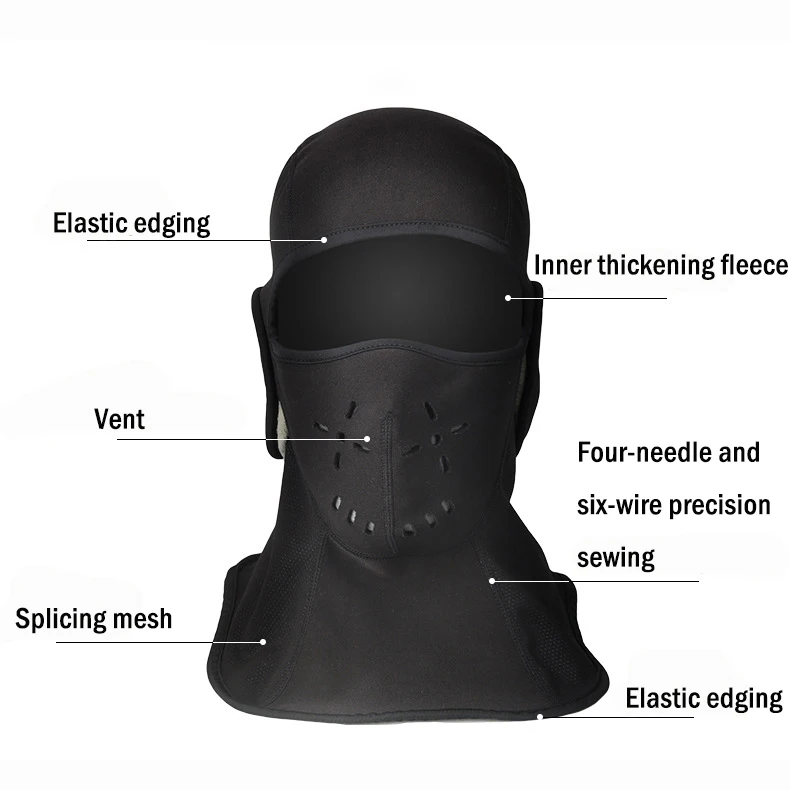Black Winter Fleece Full Face Mask Thermal Warmer Cycling Hood Liner Sports Ski Bike Riding Snowboa