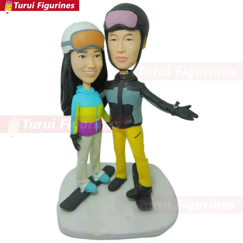BEST QUALITY Snowboarding Personalize Bobble Head Clay Figurine Snowboarding Wedding Cake Topper Snowboarding Gi